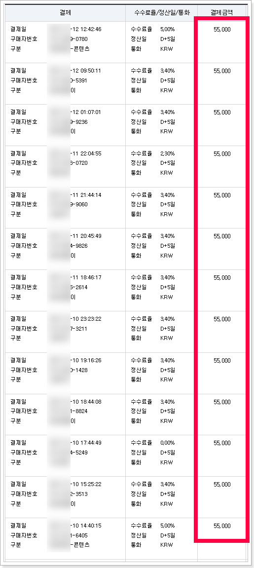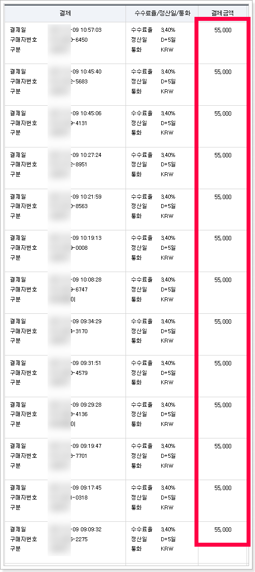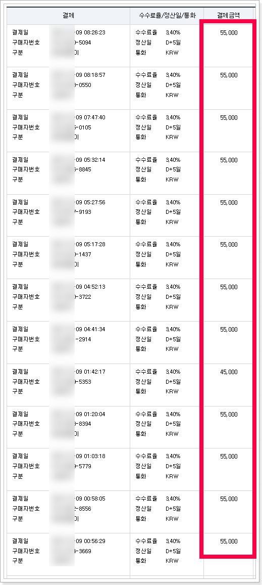 카드 매출 10,065,000원(순수익)